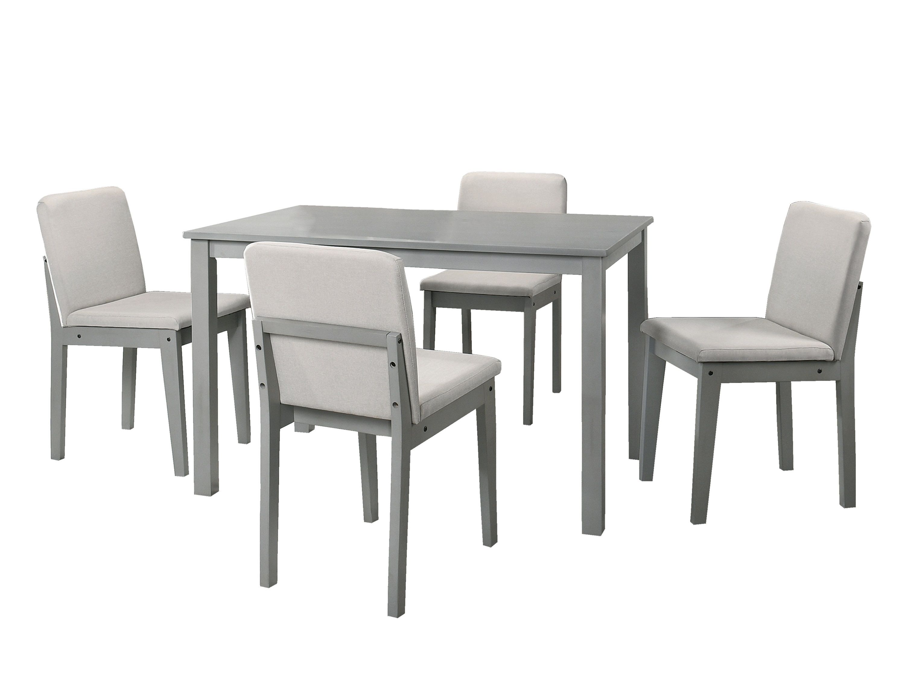 Home > Grey Finish 5pc Dining Room Set Dining Table 4x Chairs Beige Fabric Chair Seat Kitchen Breakfast Dining room Furniture Rubberwood Veneer Unique Design