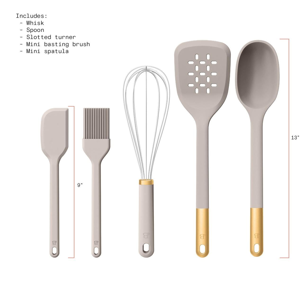1.Includes slotted turner, spoon, mini spatula, whisk, and mini basting brush