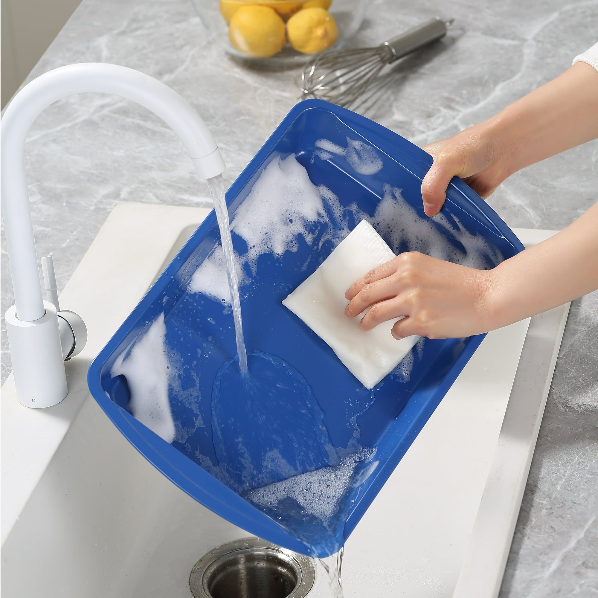4.Although bakeware is dishwasher safe, wash in mild dishwashing detergent and warm water before first and after each use