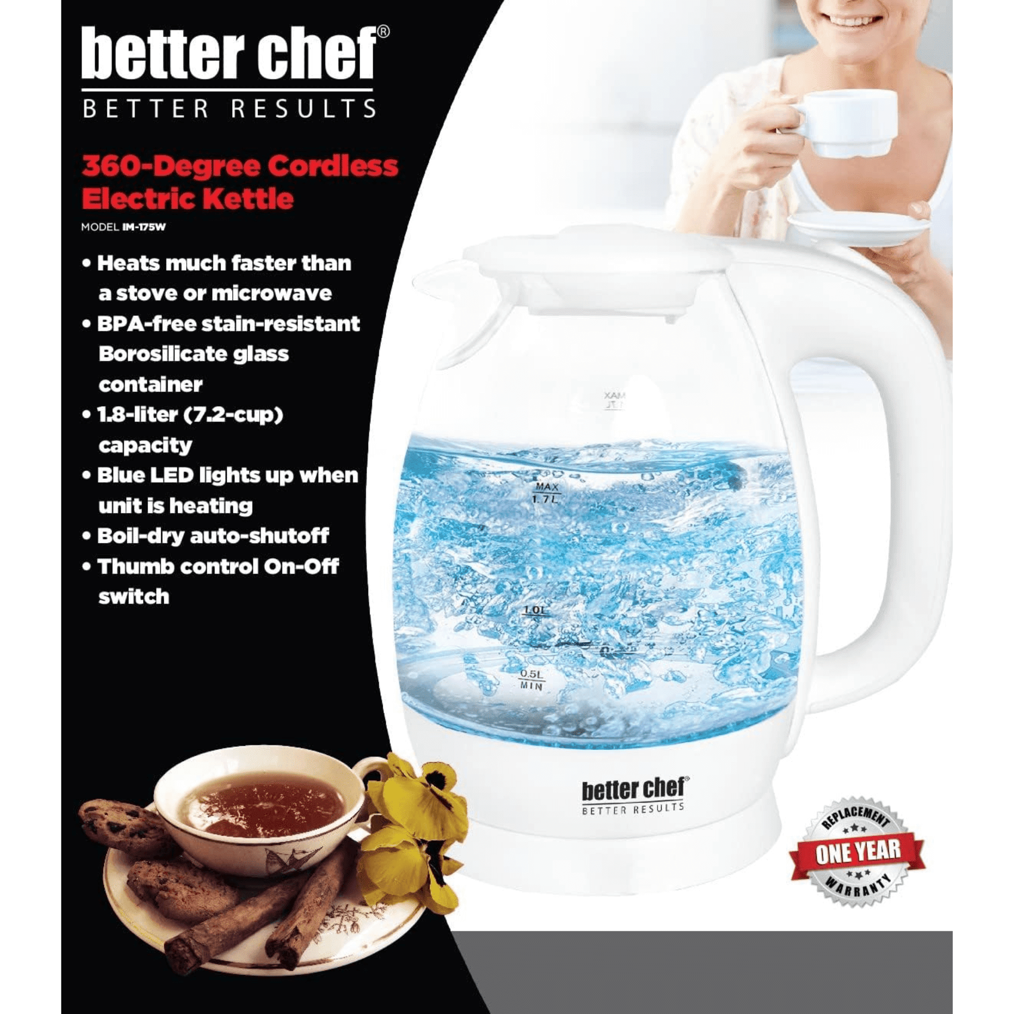 Better Chef 7-Cup Cordless Electric Borosilicate Glass Kettle with LED Light