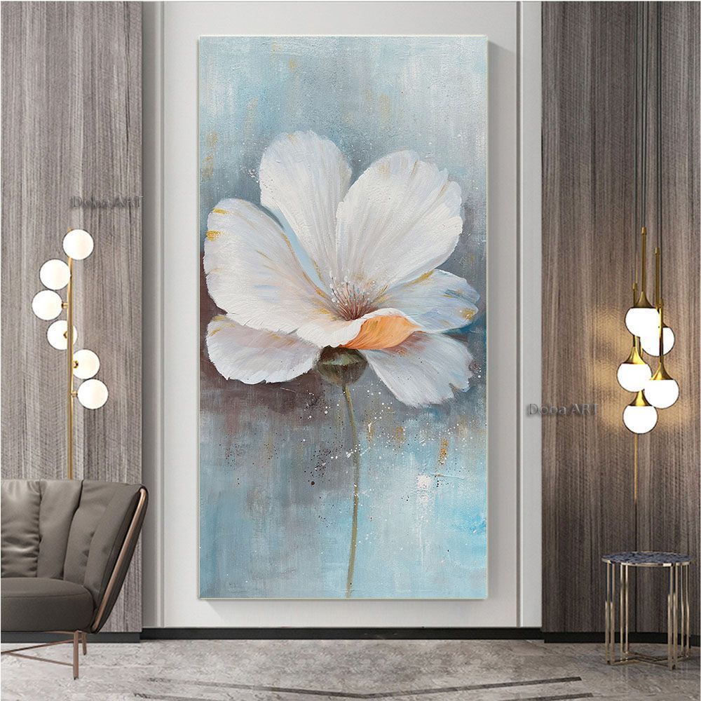 Home > White flower thick large size square picture oil canvas painting abstract sitting room dining-room wall no framework